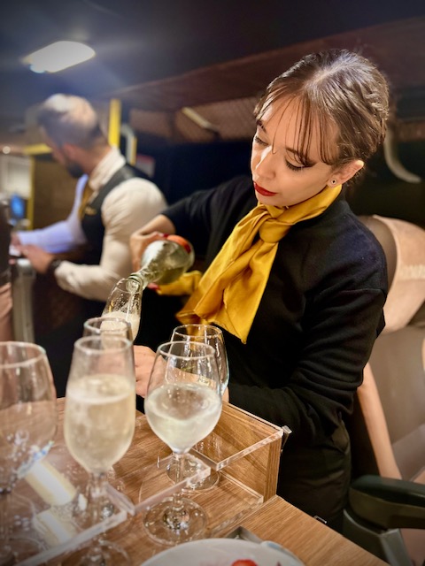 O confortável ônibus possui dois andares com a capacidade para transportar 62 passageiros — 50 na parte de cima e 12 na debaixo — percorre vagarosamente o trajeto com a velocidade máxima de 20/30 km/hora, permitindo que os turistas desfrutem de sua refeição e drinks com a máxima segurança e dentro das regras do trânsito.