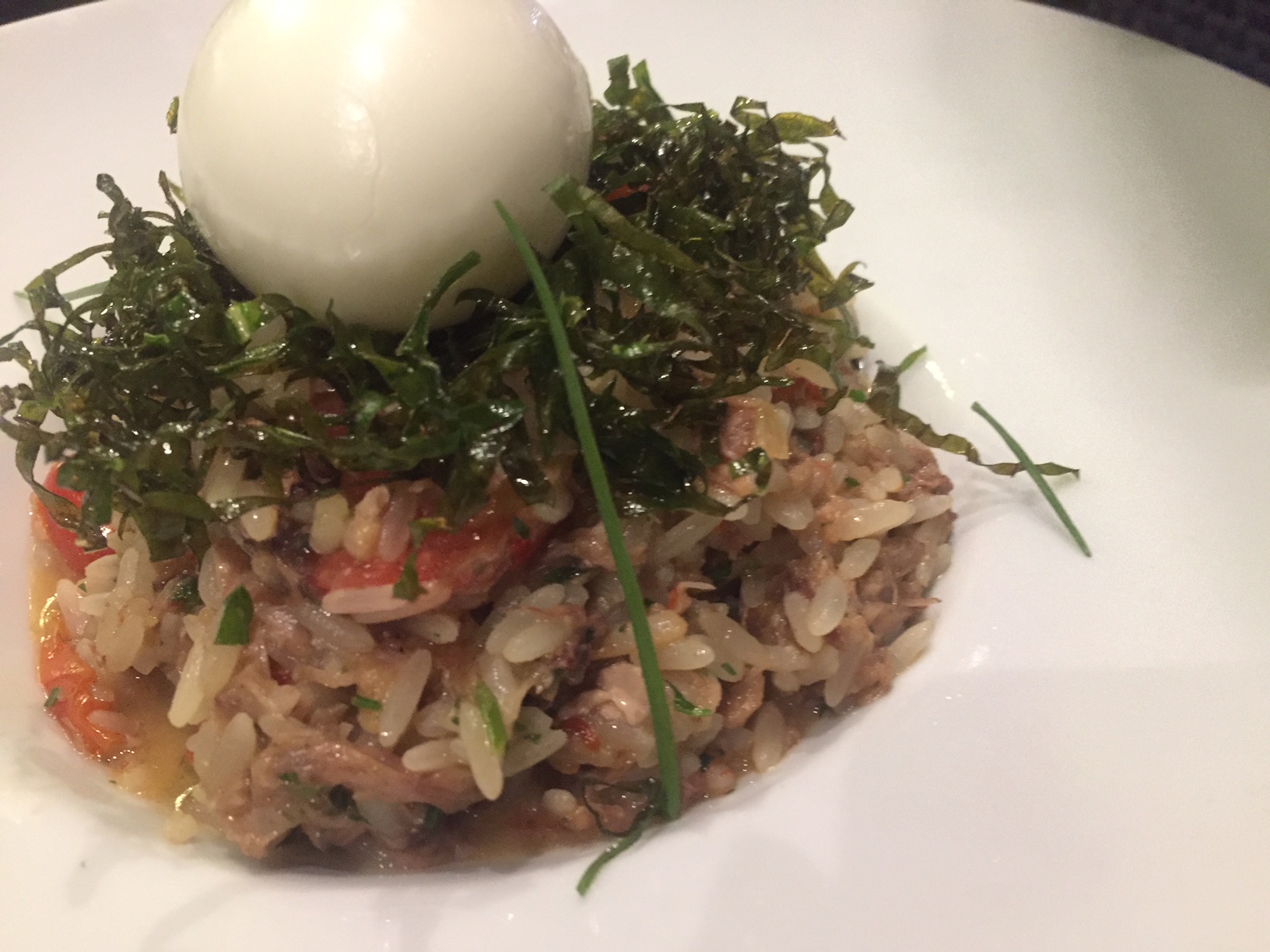Continuei na pegada de comidinhas oriundas do mar e provei o Iandê (R$69,00), que dizem ser o carro chefe da casa. Ele é feito de arroz arbóreo al dente, com tinta de lula, polvo e aióli. Junto com uma grande expectativa, a gente sempre se resguarda de uma possível grande decepção. E por azar isso ocorreu! Simplesmente quem o executou não o experimentou antes de enviá-lo à mesa… O arroz estava tão salgado que simplesmente após uma garfada memorável, foi deixado de lado. Uma pena!