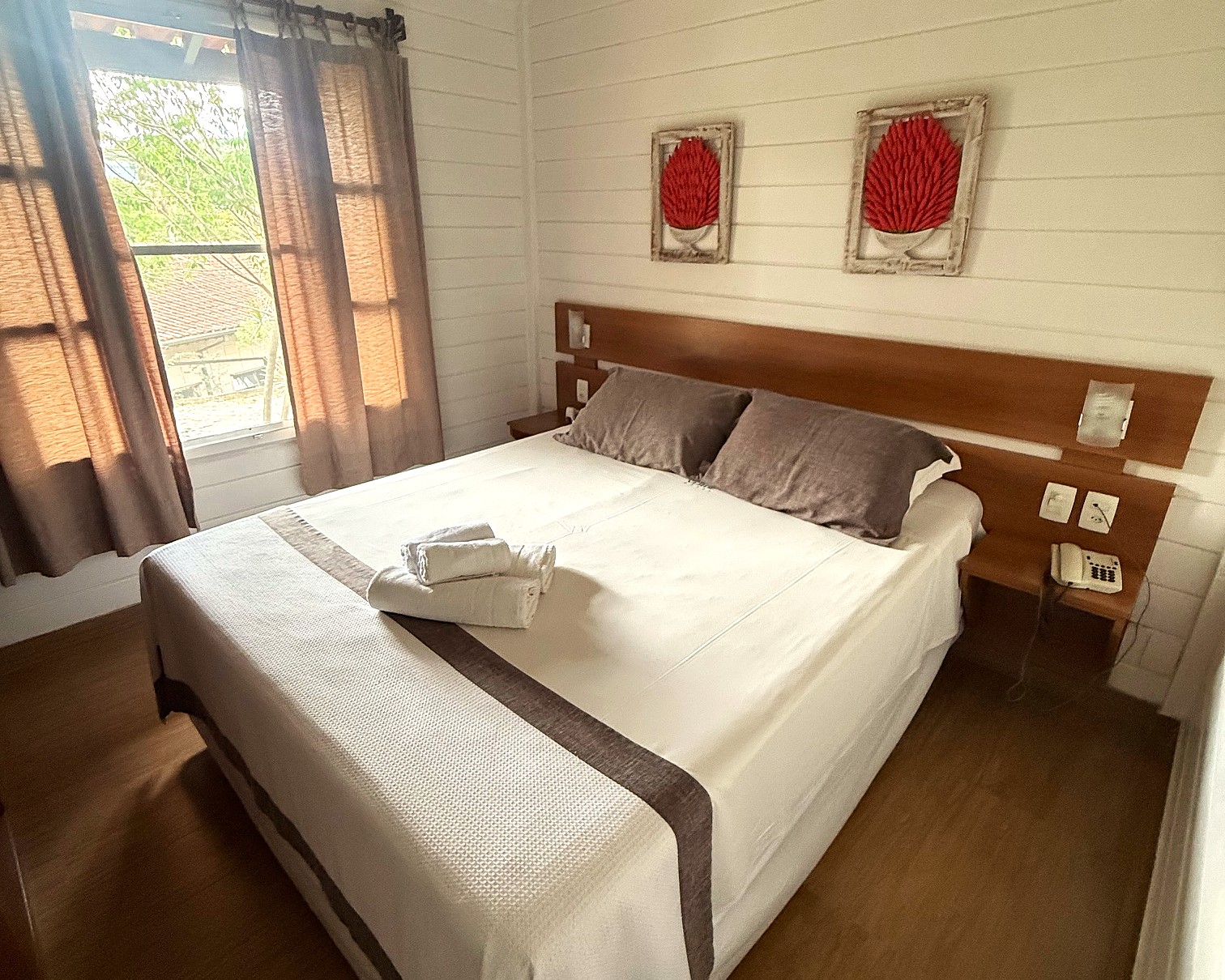 O meu chalé era muito gostoso porque havia nele uma combinação de conforto essencial: um colchão macio, complementado por lençois de algodão de alta qualidade, travesseiros firmes e sedosos, ambiente com ar-condicionado, frigobar, lareira, cortinas que bloqueavam a luz externa proporcionando uma noite de sono ideal. Um banheiro impecavelmente limpo, com um bom chuveiro, toalhas macias e produtos de higiene de qualidade também contribuíram para a sensação de bem-estar.