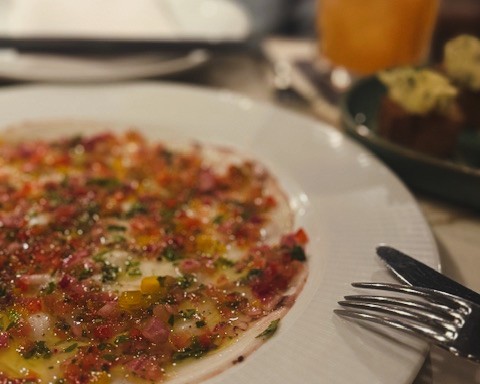 Iniciei meu jantar com o Carpaccio de Polvo (R$150,00), chegou exalando frescor e delicadeza. O polvo de alta qualidade, com textura macia e produzido em lâmina ultrafinas, foi mergulhado em um vinagrete equilibrado, intensificando o sabor da receita. Uma escolha solida para quem busca excelência em frutos do mar.